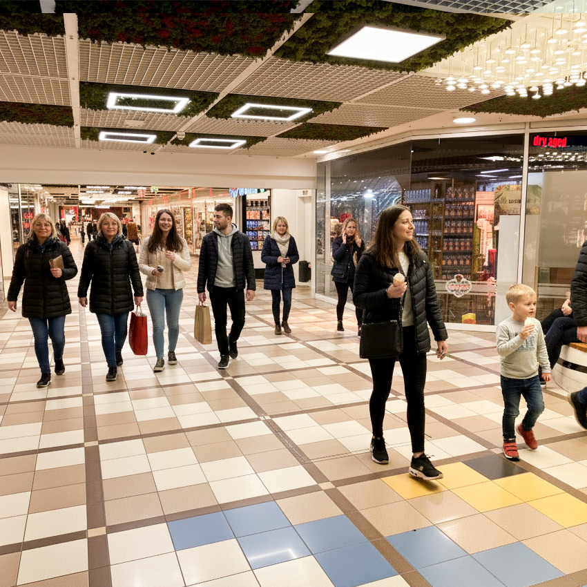 Im gesamten Center setzen wir auf moderne LED-Technik. Diese ist nicht nur besonders energiesparend, sondern sorgt auch für eine helle, freundliche Atmosphäre in den Ladenstraßen und Außenbereichen. Der Umstieg reduziert den Stromverbrauch deutlich und macht das Center fit für die Zukunft.